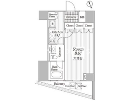 | 間取り | 1K 北向き | 専有面積 | 29.55m 2 ( 8.93坪 ) |